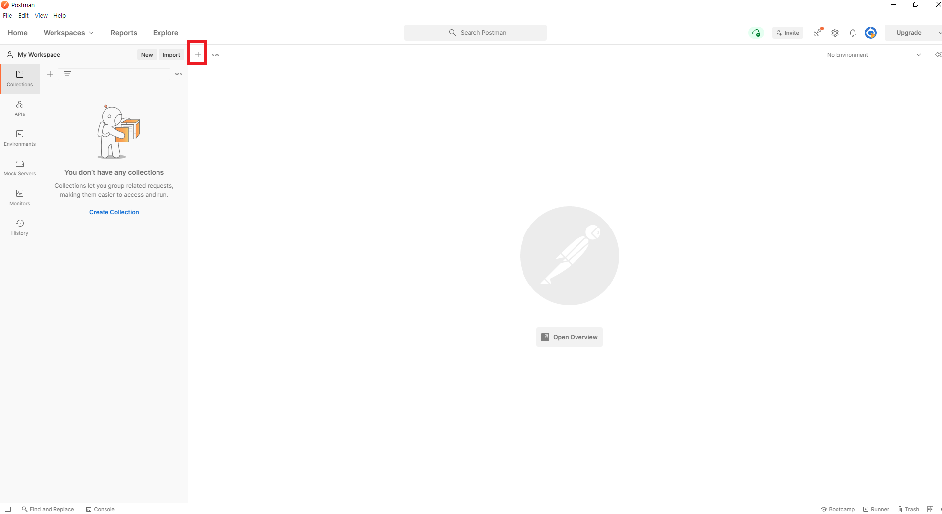 실행을 하면 아래와 같은 화면이 나오게 되는데, +버튼을 누른다.