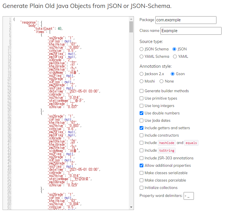 PreView를 눌러주게 되면 POJO클래스로 변환해준다.